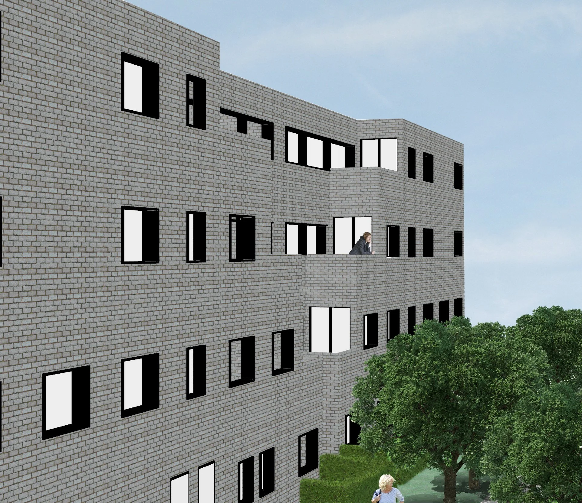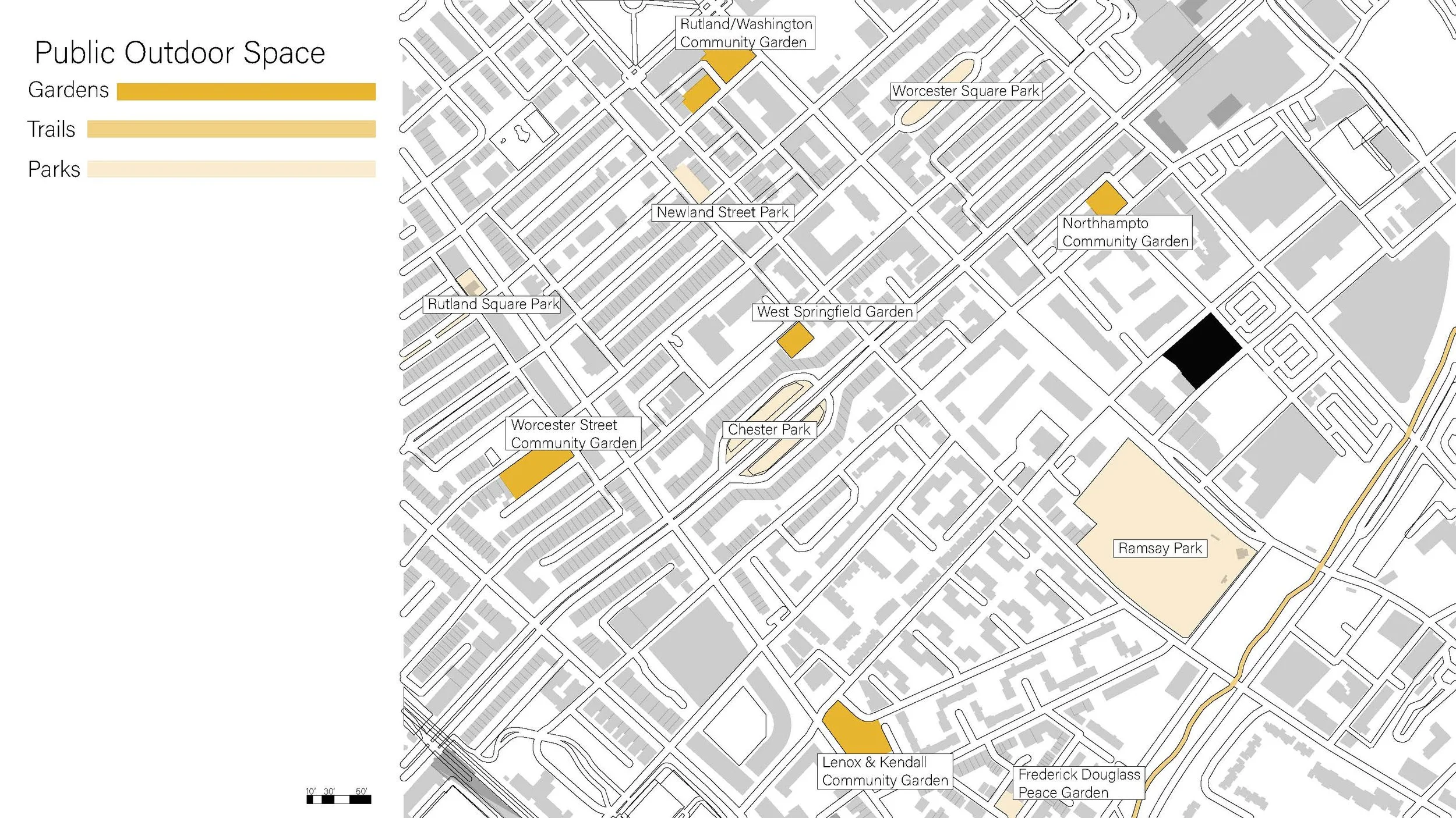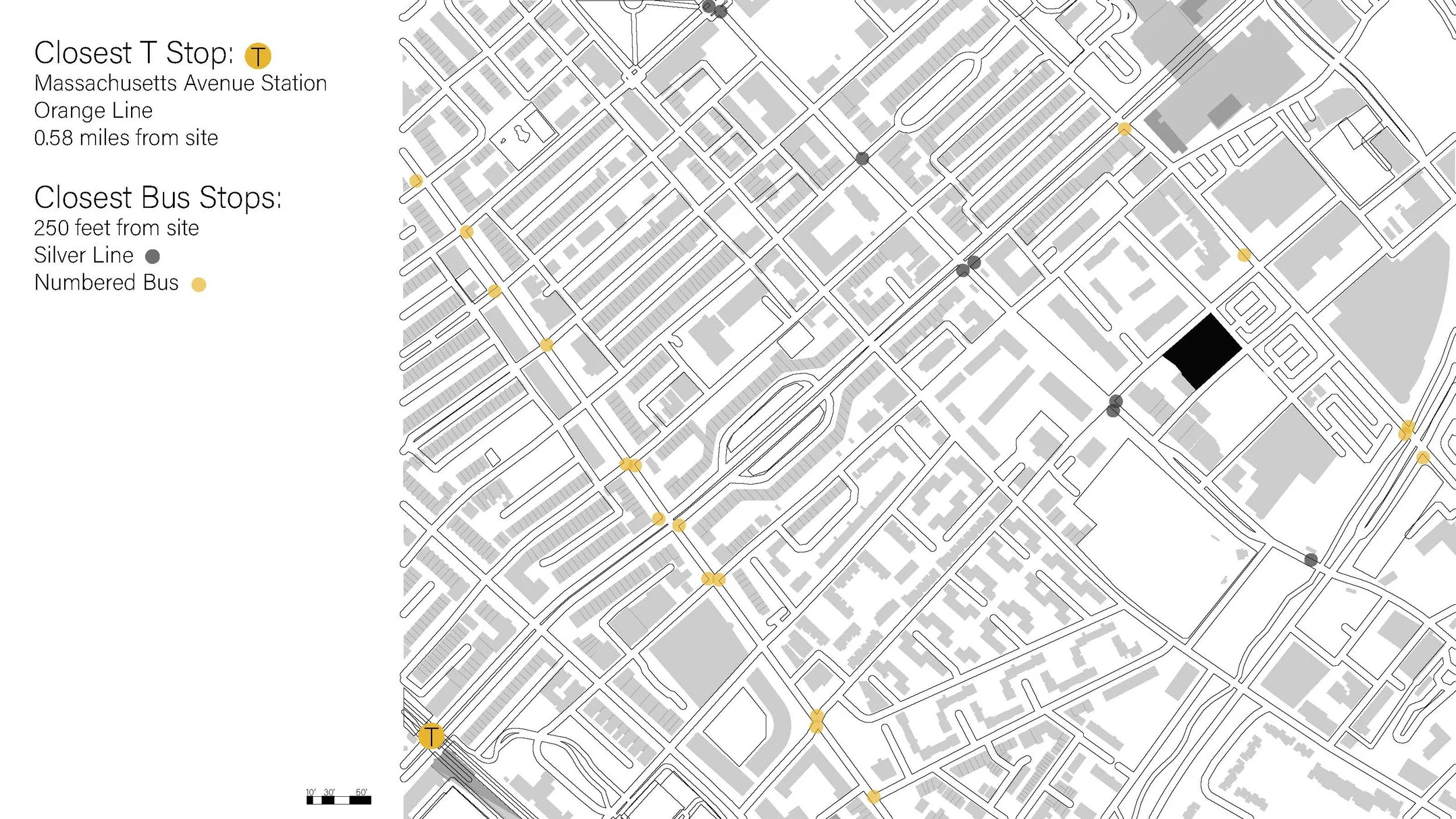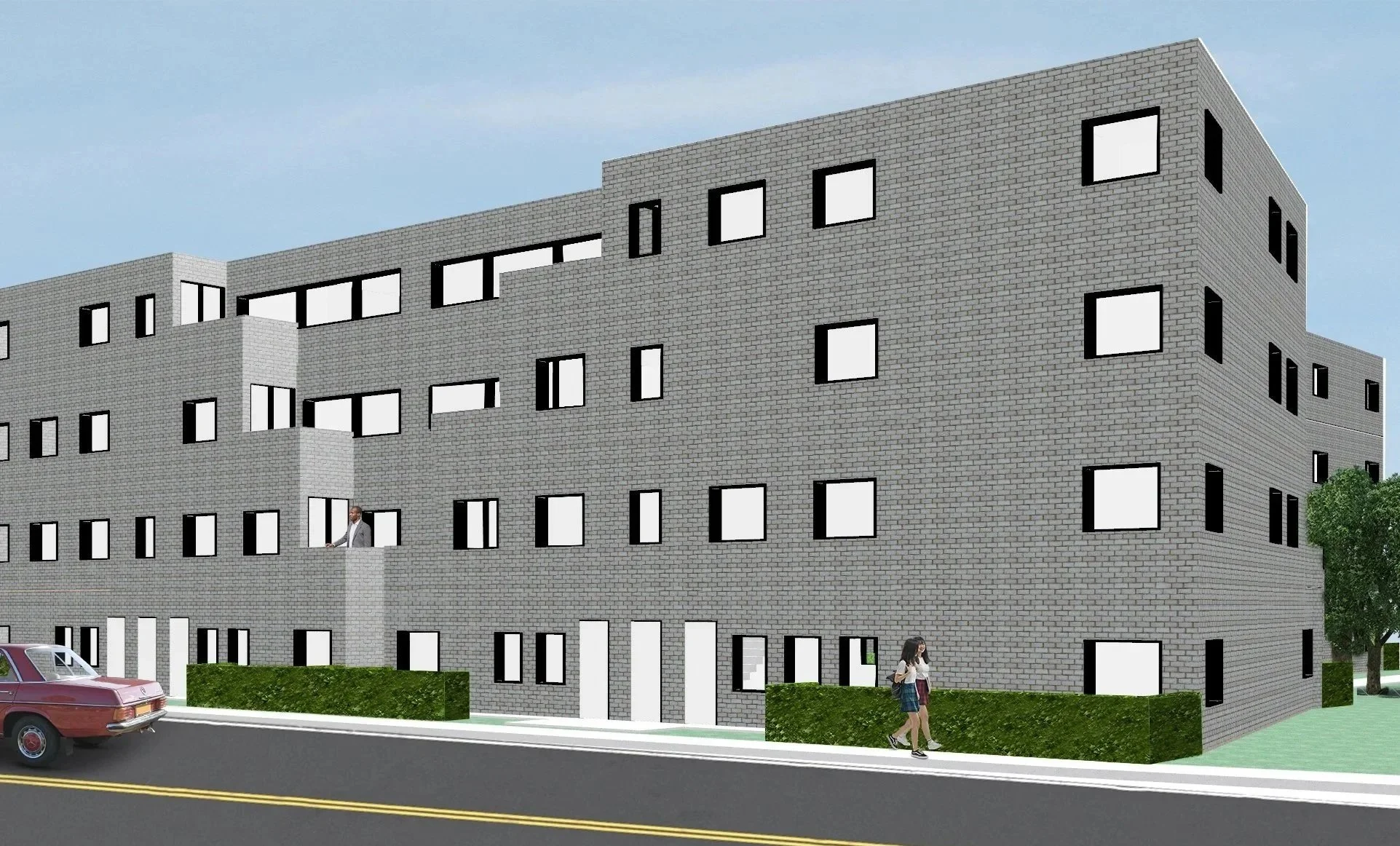 Located in Roxbury, Massachusetts, this project offers a solution to large-scale walk-up urban housing. Keeping within the restraints of Massachusetts fire code, this four-story 58 unit structure accounts for accessibility within ground-floor units and throughout the site. This project, while centered around accessibility and code compliancy, also aims to create an urban space where residents enjoy spending their time, whether it be in their unit or outside with their community.